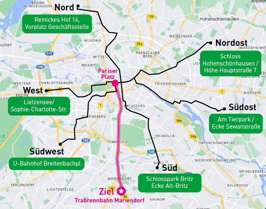 Anmeldung: bis zum 23.06.2026 bei Frau Philipps entweder per E-Mail unter oder telefonisch unter 030 417 858-40 unter Angabe Ihrer Kontaktdaten, Teilnehmerzahl und falls Sie ein Trikot benötigen, der Größe. Das Trikot ist gleichzeitig die Eintrittskarte fürs Abschlussfest. Wir empfehlen, einen Fahrrad-Helm zu tragen. Die Route ist auch für „ungeübte“ Fahrradfahrer geeignet. Gefahren wird auch bei Regen!
